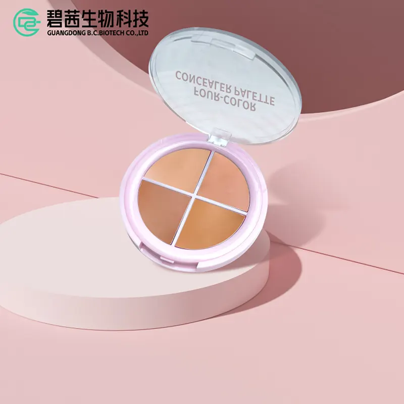 -컨실러 브러시에서 4 가지 색상 컨실러 키트를 사용하고 숨기는 영역에 적용을 시작하십시오.