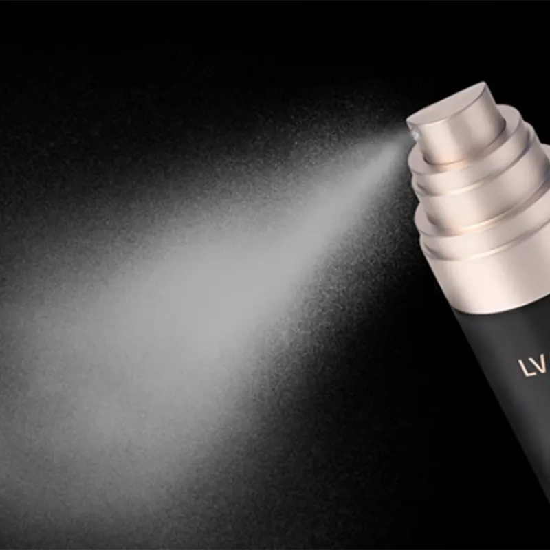눈과 입을 완전히 닫은 다음 펌프를 단단히 누르면 병을 피부에서 6 ~ 10 인치 떨어 뜨리면서 얼굴을 골고루 싱글합니다.
